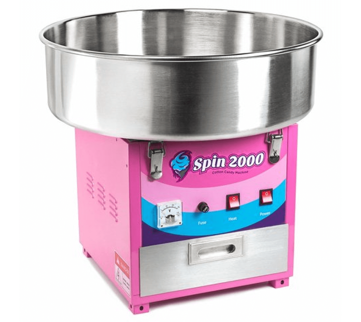 This electric cotton candy machine for home or commercial use can produce up to 2-3 servings of cotton candy per minute! Usage: Turn it on, wait for it to warm up (about 5 min), and pour in the sugar.